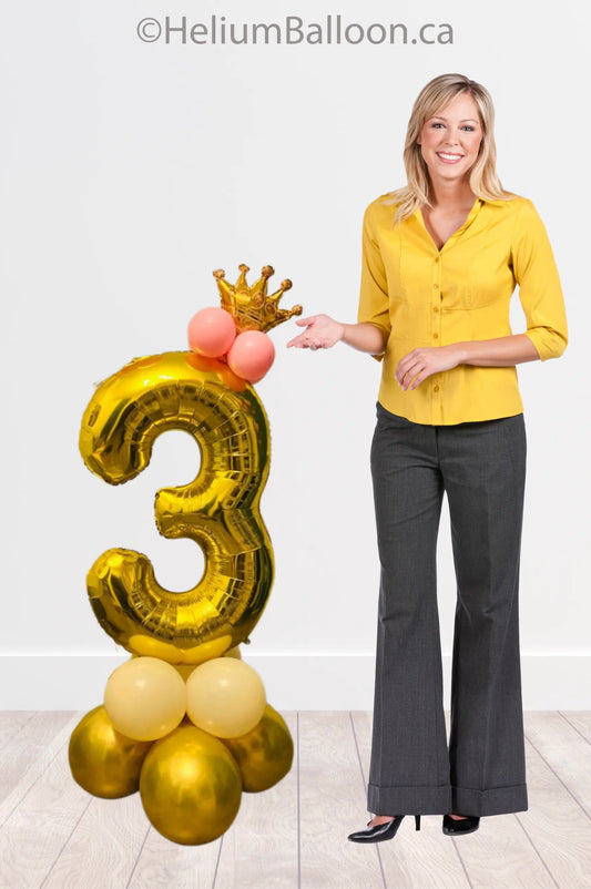 LARGE Gold Number with Crown Balloon (Age 0 to 9)