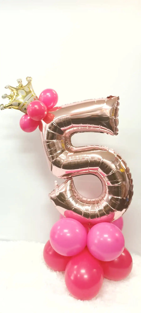 LARGE Rose Gold Number with Crown Balloon (Age 0 to 9)