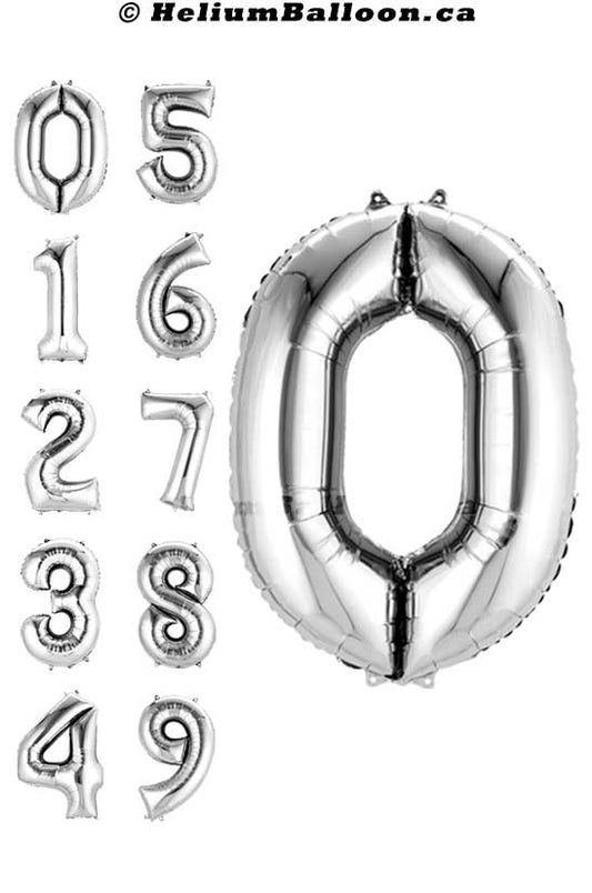 Silver Number Balloon 34" ( Age 0 to 9 )
