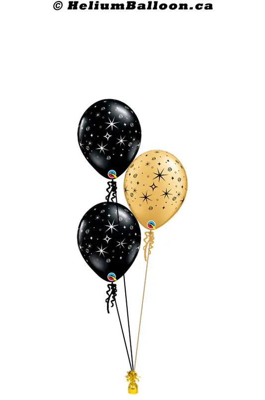Bouquet 7 Balloons - Black, Chrome Gold & Marble Black