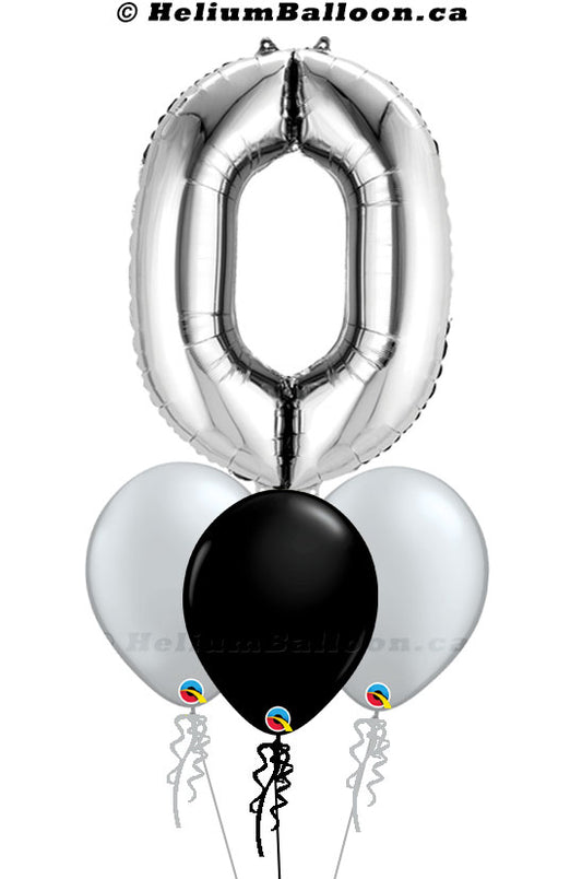 Bouquet Happy Birthday Age 30/40/50/60/65/70/80th Black & Silver