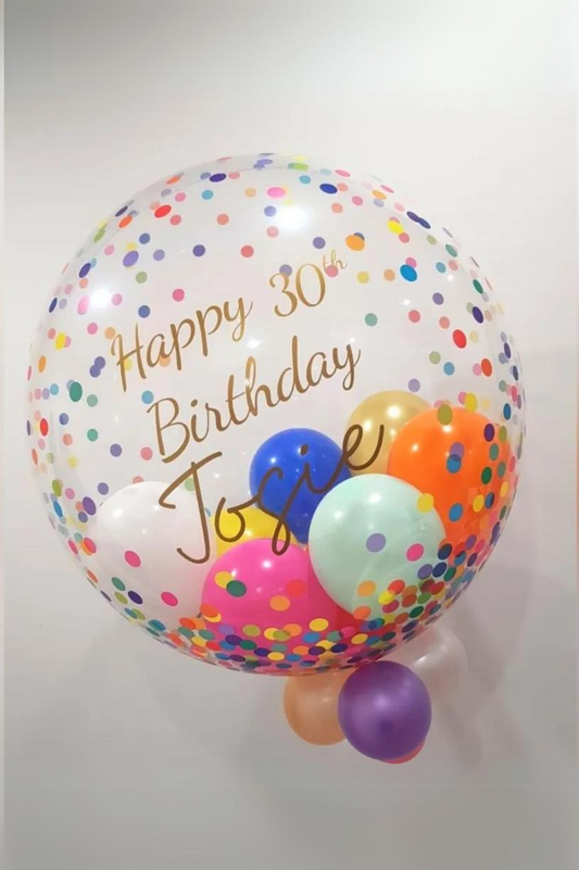 Custom Text - Bubble Multicolor Confettis - Mini Balloons inside - (CHOOSE YOUR BALLOON COLORS)