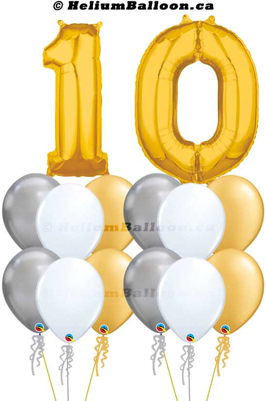 Super Bouquet Chiffre Or 34 pouces ( 10 à 99 ans )